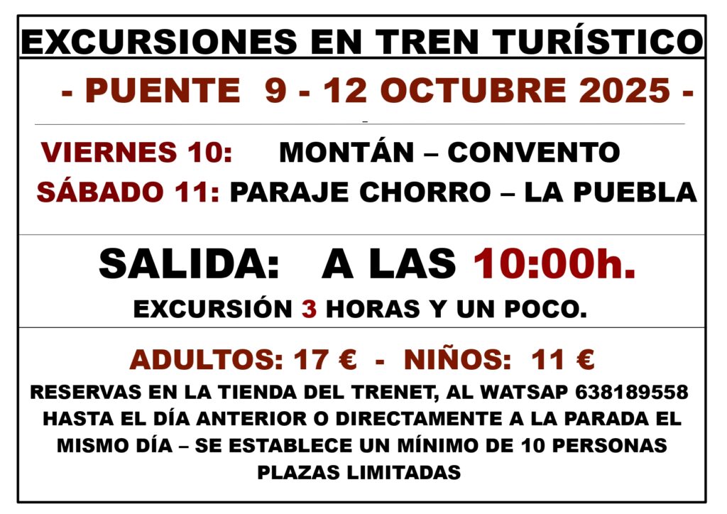 ESTE PUENTE DE OCTUBRE DISFRUTA DE LA COMARCA DEL ALTO MIJARES EN NUESTRO «TRENET»